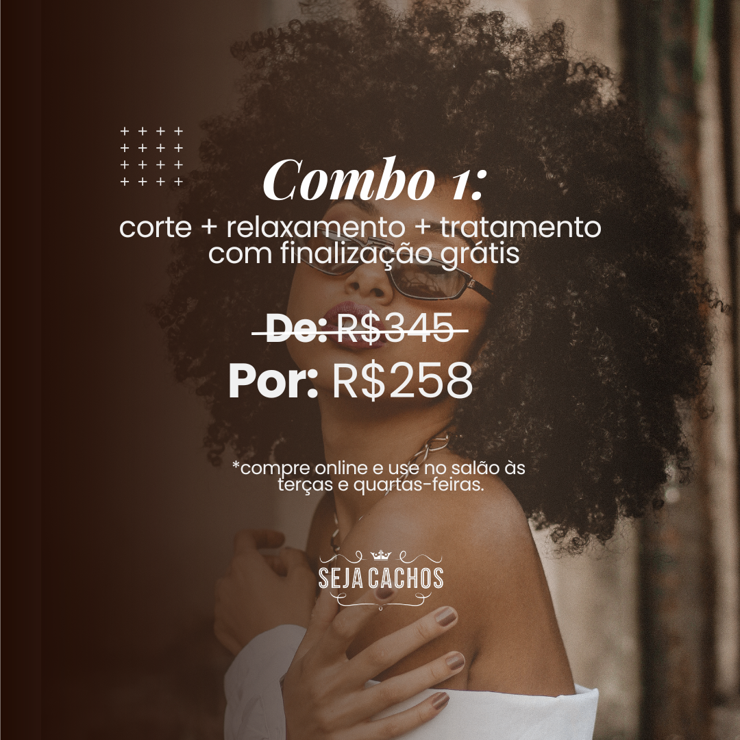 Seus cachos precisam de um cuidado especial, e nós sabemos como fazer isso! Corte + Relaxamento + Tratamento com profissionais que entendem de verdade o que seu cabelo precisa. Aproveite a promoção exclusiva online e eleve sua autoestima.